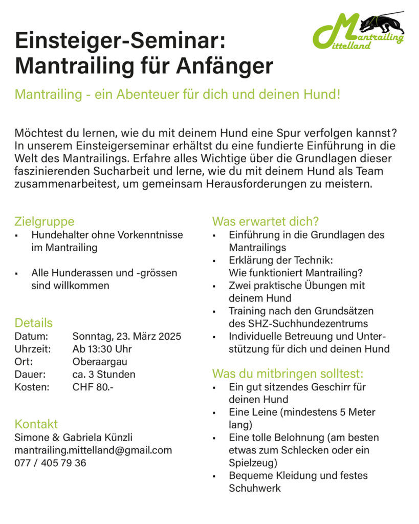 Einsteigerseminar - Mantrailing für Anfänger